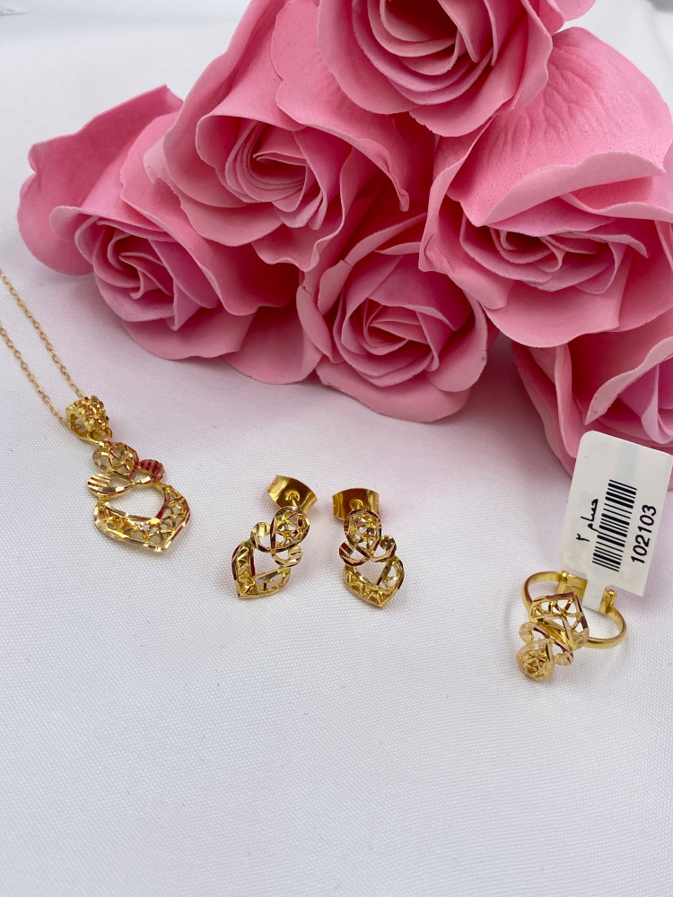 عقد+خاتم+حلق ذهب راقي عيار 21 الجميل مناسب للاستخدام اليوم يضيف لي جمالك جمال
