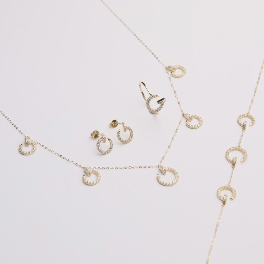 طقم خاتم+عقد+حلق + اسوارة عيار 18 راقي مناسب للاستخدام اليومي يضيف لي جمالك جمال