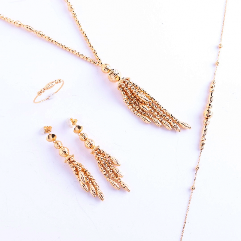 طقم حلق+عقد+خاتم+اسوارة عيار 21مناسب للعروس والشبكات يعطي فخام ومناسب للسهرات