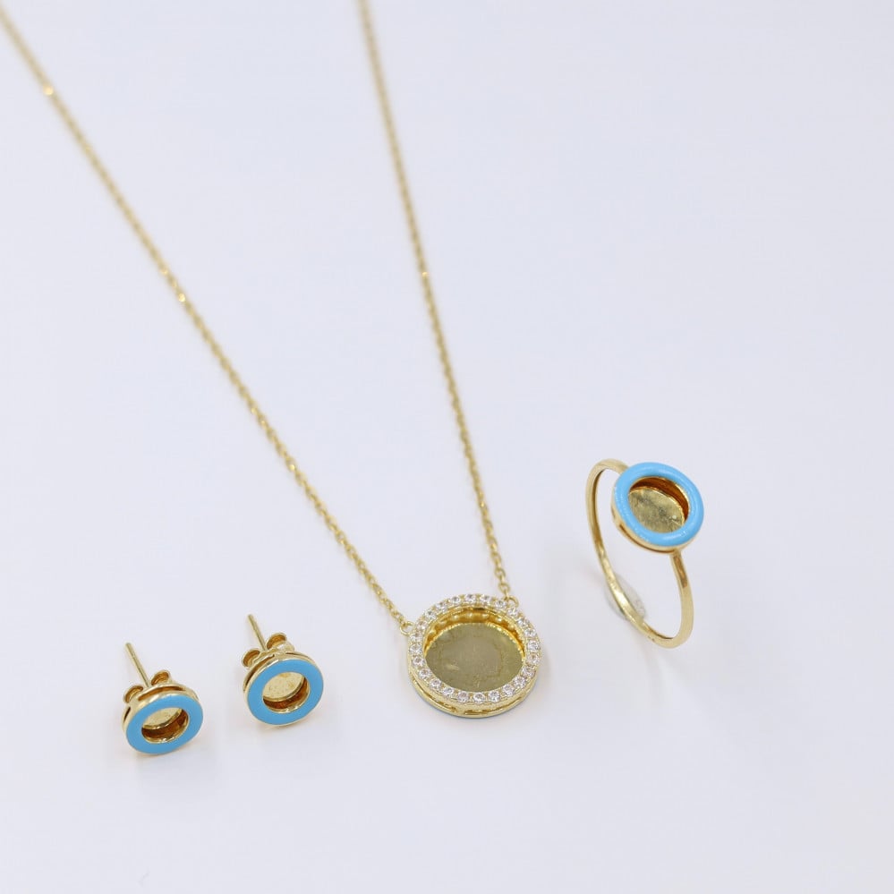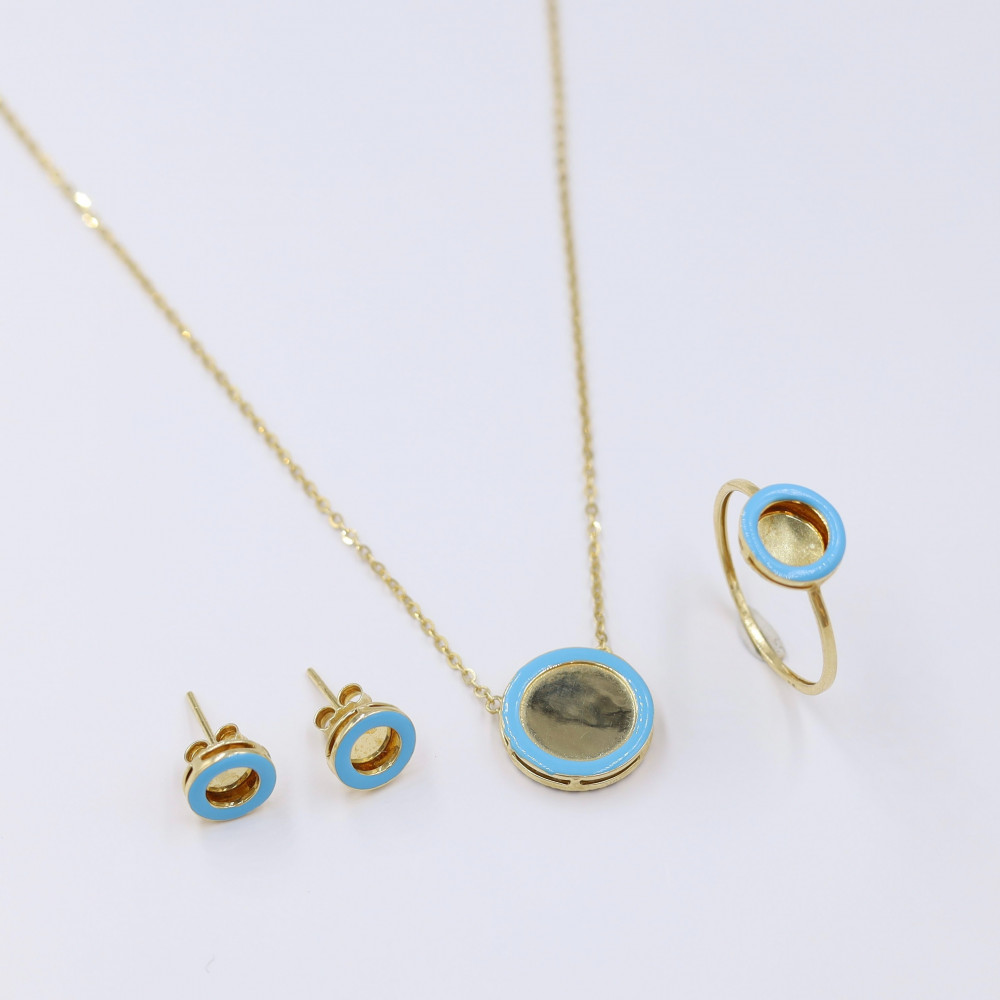 طقم ذهب عيار 18 ملون و و ايضا يمكن لبس العقد من الجيهتين مكون من: