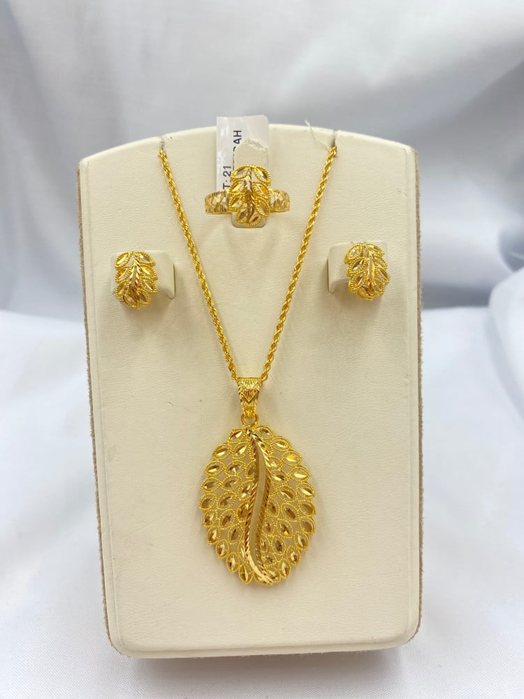 خاتم +عقد+حلق ذهب متميز عيار 21