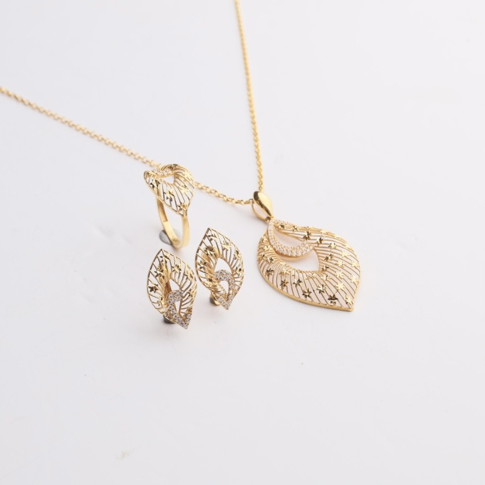 خاتم +عقد+حلق ذهب مميز عيار 21