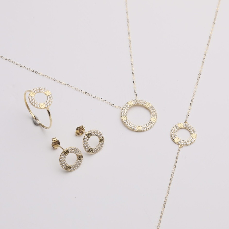 طقم خاتم+عقد+حلق + اسوارة عيار 18 راقي مناسب للاستخدام اليومي يضيف لي جمالك جمال