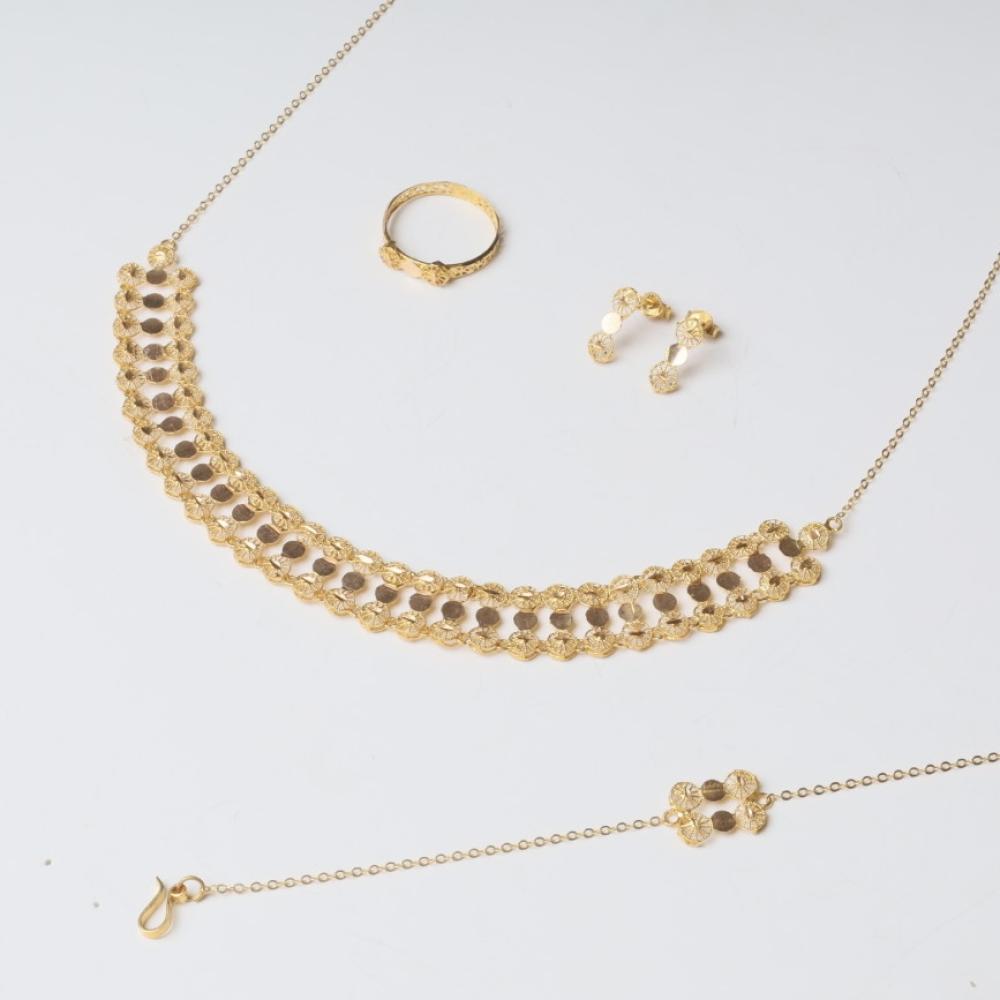 طقم عيار 21 خاتم +عقد+حلق اسوارة مناسب للعراس والشبكات يضيف لي جمالك جمال