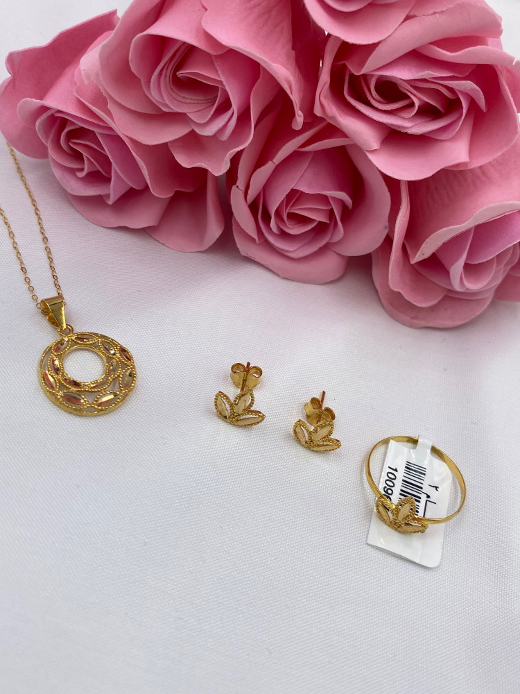 عقد+خاتم+حلق ذهب راقي عيار 21 الجميل مناسب للاستخدام اليوم يضيف لي جمالك جمال