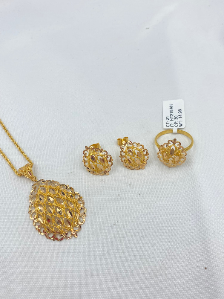 نصف طقم عيار 21 خاتم +عقد+حلق مناسب للاستخدام اليومي يضيف لي جمالك جمال