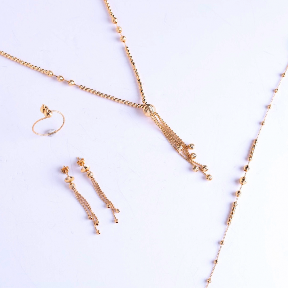 Earring + necklace + ring + bracelet set, 21 carat, suitable for the bride and groomsmen, gives elegance and is suitable for evening occasions