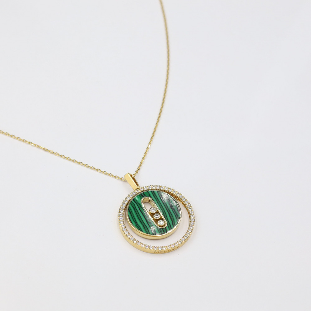 Inlaid with white zircon, otherwise the green lobe, outlined in black, a new and exclusive collection at Hossam Jewelry