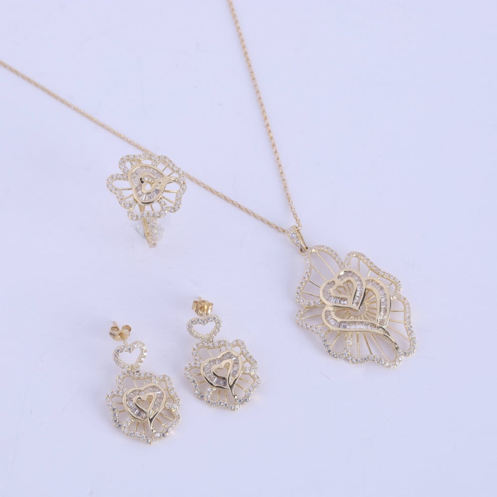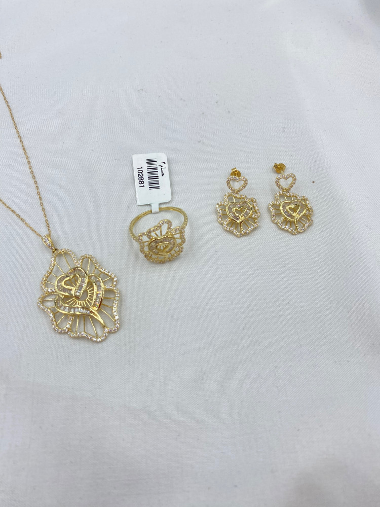 Half set of 18 karat necklace + ring + elegant earring, suitable for daily use, adding to your beauty
